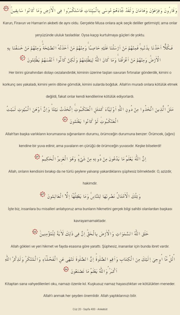 Ankebut Suresi 39-45
