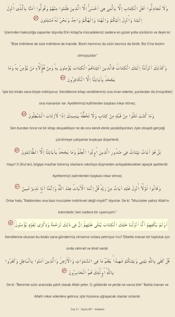 Ankebut Suresi 46-52